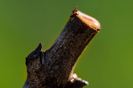 اگر می‌خواهید یک شاخه کامل را حذف کنید، باید از پایین‌ترین قسمت آن را برش دهید تا قسمتی از آن شاخه روی تنه باقی نماند. در این صورت بافت زخم‌خورده سریع ترمیم شده و بیماری به آن نفوذ نمی‌کند. اگر قطر شاخه بیشتر از ۵ سانتی‌متر باشد، سطح بریده شده باید با چسب باغبانی دارای سم قارچ‌کش پوشانده شود.